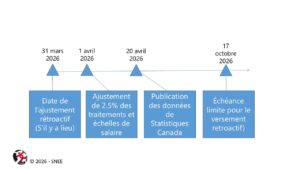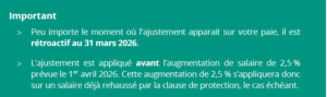 L’augmentation de salaire liée au cout de la vie prévue dans la convention collective  se calculera, s’il y a lieu, à partir du 31 mars 2026, son taux ne sera connu que seulement le 20 avril 2026.